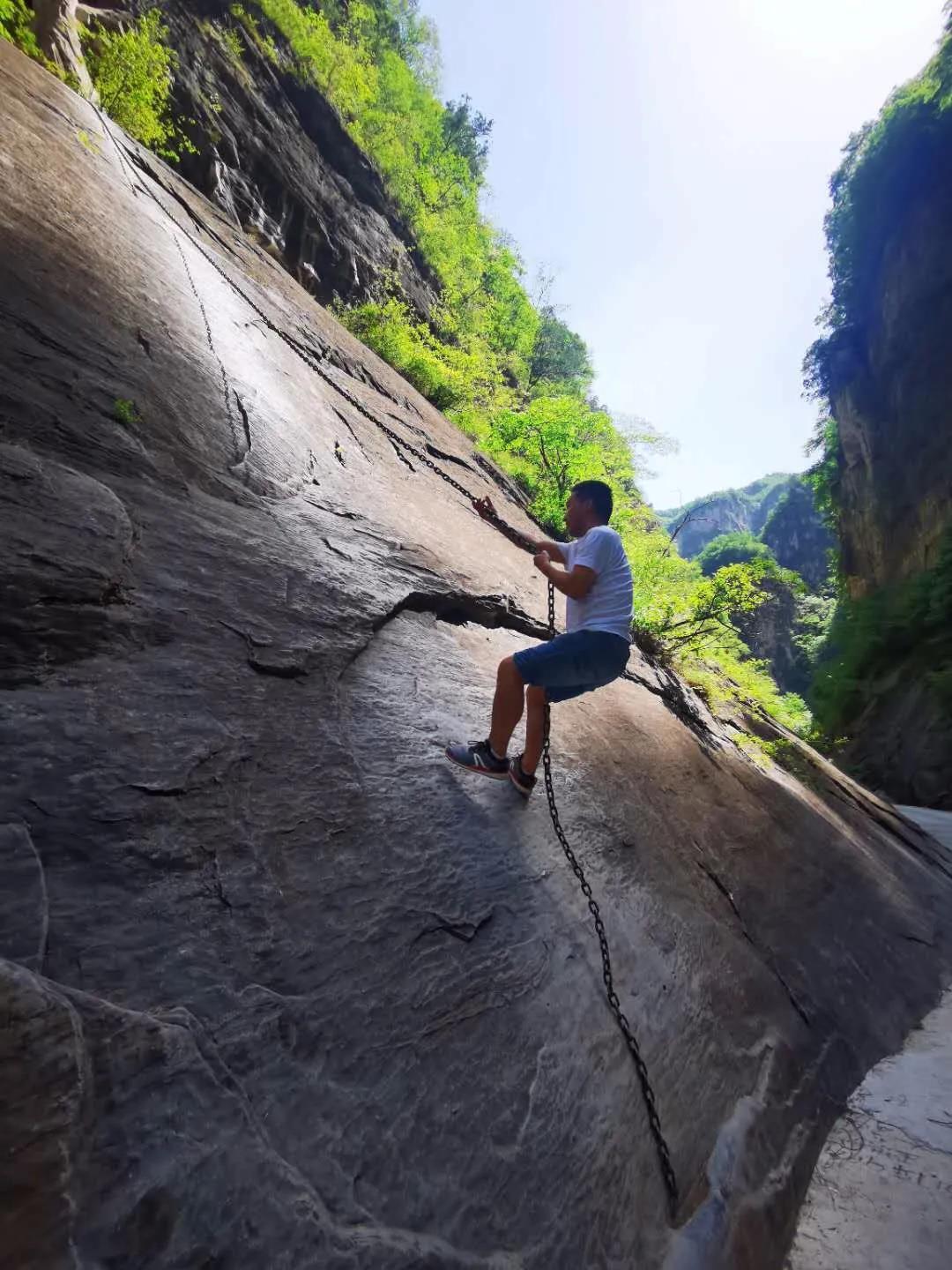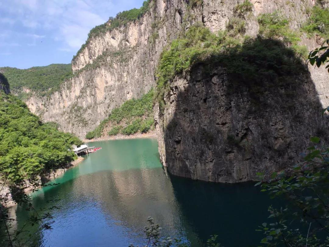 22日上午我們迎著艷陽(yáng)來(lái)到了紅豆杉大峽谷,要進(jìn)入峽谷之前首先要爬近乎于180度的山階登頂,途經(jīng)龍峽湖再乘坐游艇前往大峽谷。龍峽湖湖水和山緊密相連,湖貼著山,山摟著湖,碧綠的湖水深不見(jiàn)底,青山綠水常見(jiàn),但是如此碧綠的水真的是第 一次見(jiàn)到,此情此景仿佛只有在電影里才可以感受到。