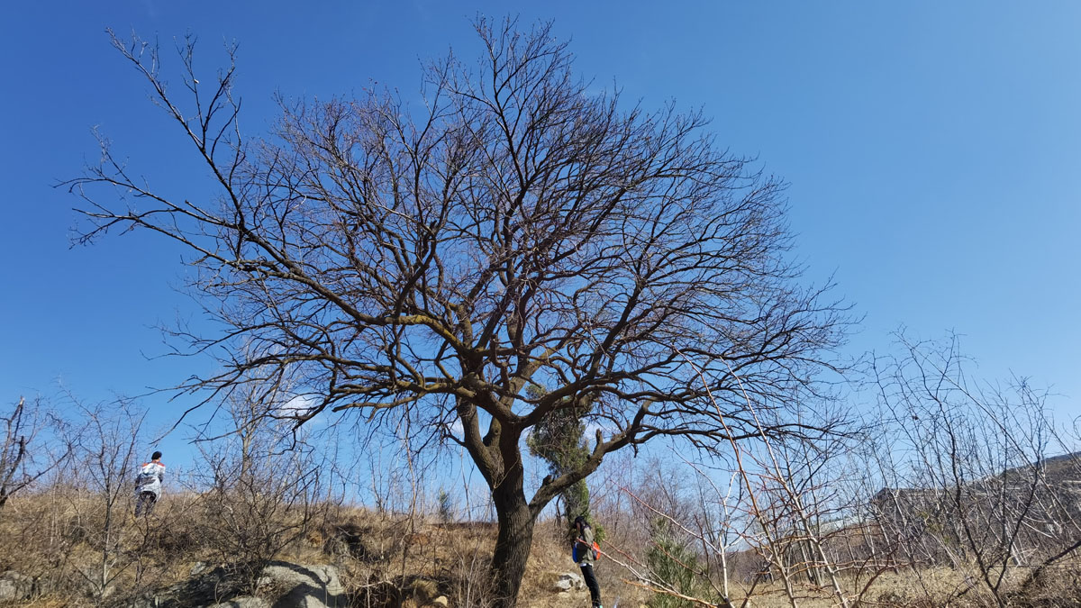 路過一棵長得非常漂亮的樹,滿樹的花苞,據說是杏樹。周圍還有和它長得很像的小樹,同樣滿樹花苞,應該是它的樹子樹孫。