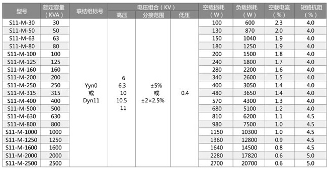 本公司研發生產的S11-M系列全密封油浸式電力變壓器具有低損耗、低噪音、高效率的優點,可取得良好的節能效果并減少污染。全密封式變壓器與普通油浸式變壓器相比,取消了儲油柜油體積的變化由波紋油箱的波紋片的彈性來自動調節補償,變壓器與空氣隔絕防止和減緩油的劣化和絕緣老化,增強運行可靠性正常運行免維護。符合以下標準: