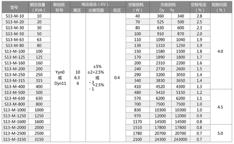 S13型是我公司在原S11型配電變壓器基礎上,通過新材料、新工藝的研究運用及自主創(chuàng)新與技術(shù)引進結(jié)合的方式,通過對鐵芯及線圈結(jié)構(gòu)的優(yōu)化創(chuàng)新設計,達到降低空載損耗及噪聲的目的。自主開發(fā)的產(chǎn)品空載損耗平均下降了37%。噪聲水平與現(xiàn)行國標JB/T10088—2004比較平均下降20%,產(chǎn)品性能水平達到國內(nèi)先進水平。執(zhí)行標準如下: